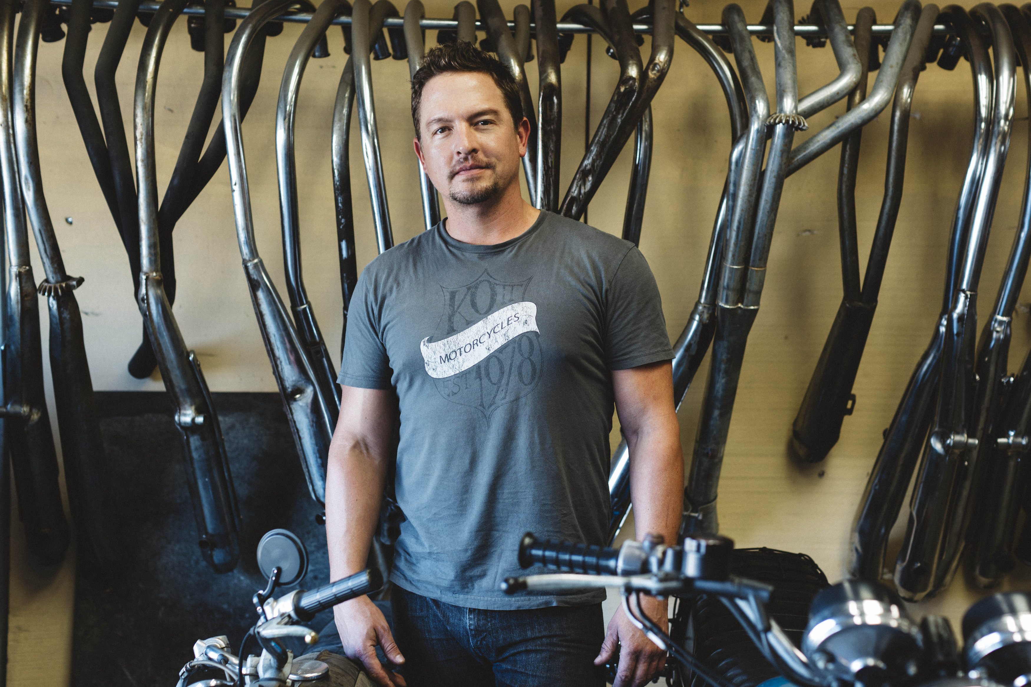 “You know, this didn’t start out as a business proposition,” Los Angeles-based custom motorcycle builder Dustin Kott says, motioning around his garage. “It doesn’t even really make a lot of business sense,” he laughs. “It just started out as something I could do at the end of an 8-hour workday and find solace.” Perched between a half-finished dove grey machine with rose-gold-toned wheels almost jewellery-esque in finish, and a shiny, black vixen of a ride that purrs in silence, Kott is somewhat of a renaissance man. He talks like an architect and builds like an artist: with emotion and intent, seeking out cult, classic or just plain old parts for his elegantly cool rides, sometimes even going so far as to dig them up out of the earth. From beginnings in his home garage, a place for hanging with mates, making a lot of noise (“too much”, he laughs) and topping off the weekend with a glass in hand, to becoming one of the most sought-after motorcycle builders in LA, Kott’s one-man-show is the epitome of deep-end jumping for passion.